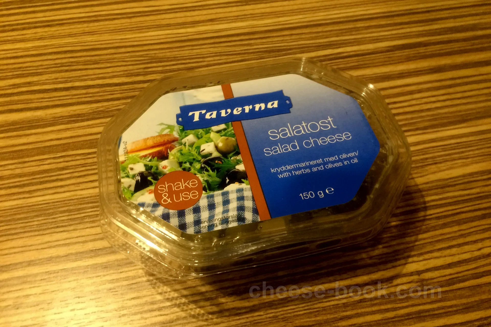 Taverna社のフェタチーズ入りサラダ「Salad Cheese in oil」です。 成城石井 ラスカ小田原店で購入、2015年12月当時内容量150gで499円(税込539円)でした。
