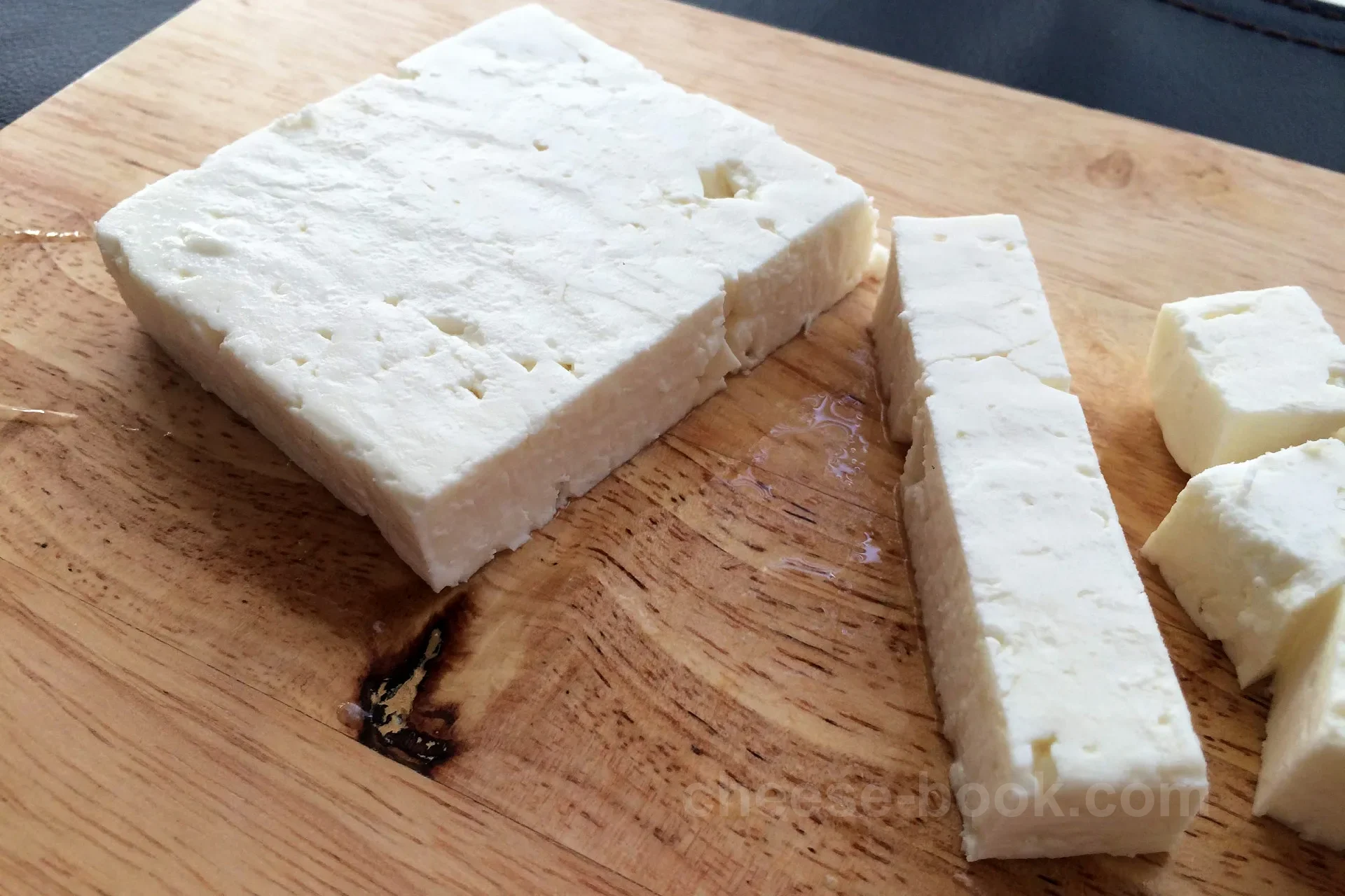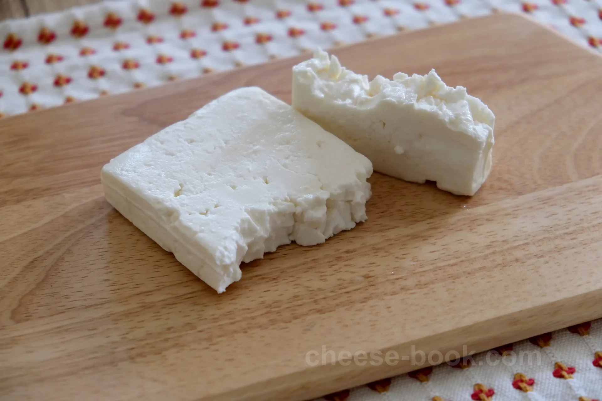 羊乳、または羊乳と山羊乳を混合して作られ(山羊乳は全体の30%以下)、塩水(ブライン)の中で熟成させることで独特の風味と保存性を得ています。白色でもろい質感が特徴で、外皮はなく、塩気が強くさわやかな酸みを持ちます。