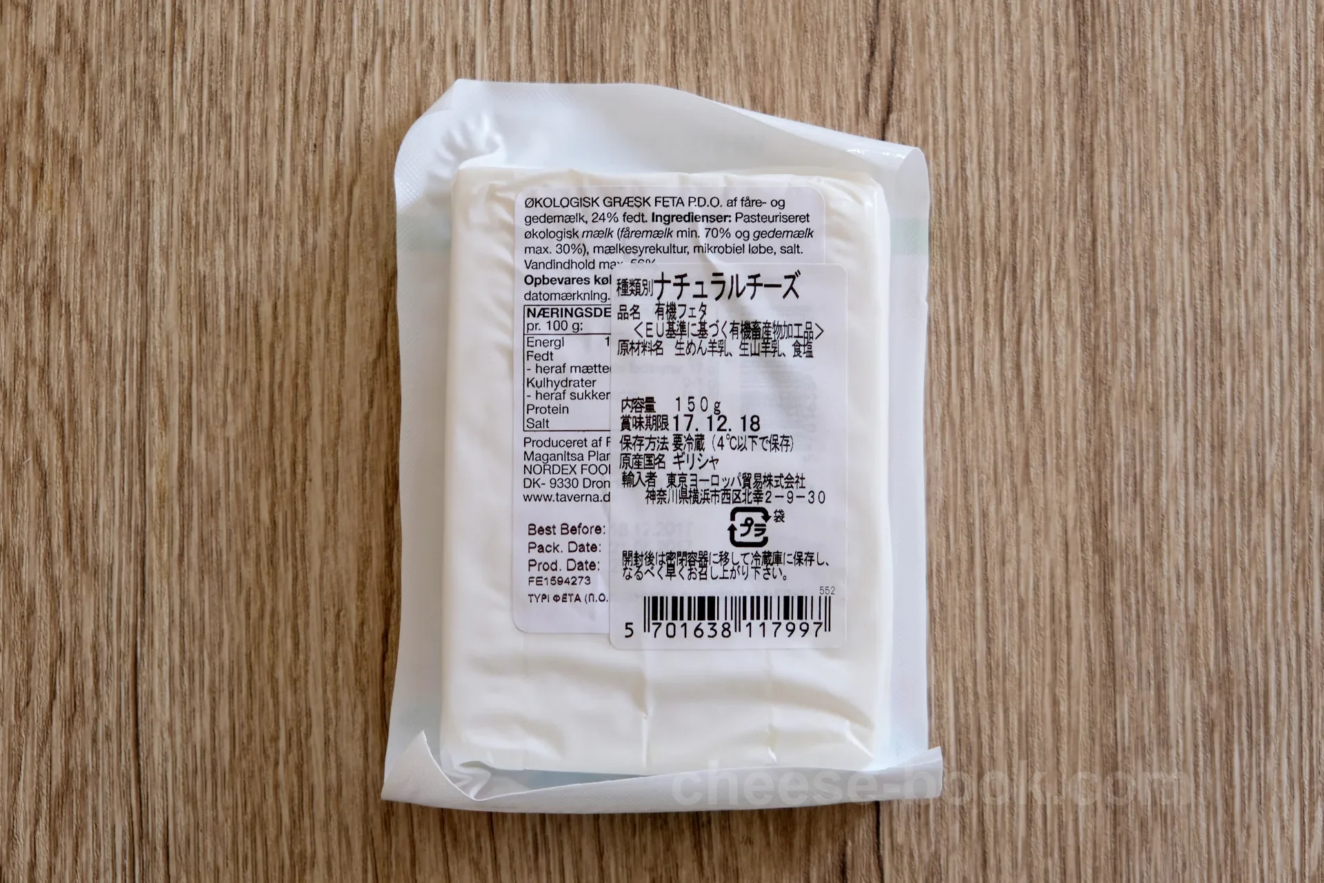 Taverna社のØkologisk Græsk Feta (オーガニック・ギリシャ産フェタチーズ)。 羊乳・山羊乳の混合ミルクで150g。 2015年9月に成城石井 ルミネ横浜店で購入しました。