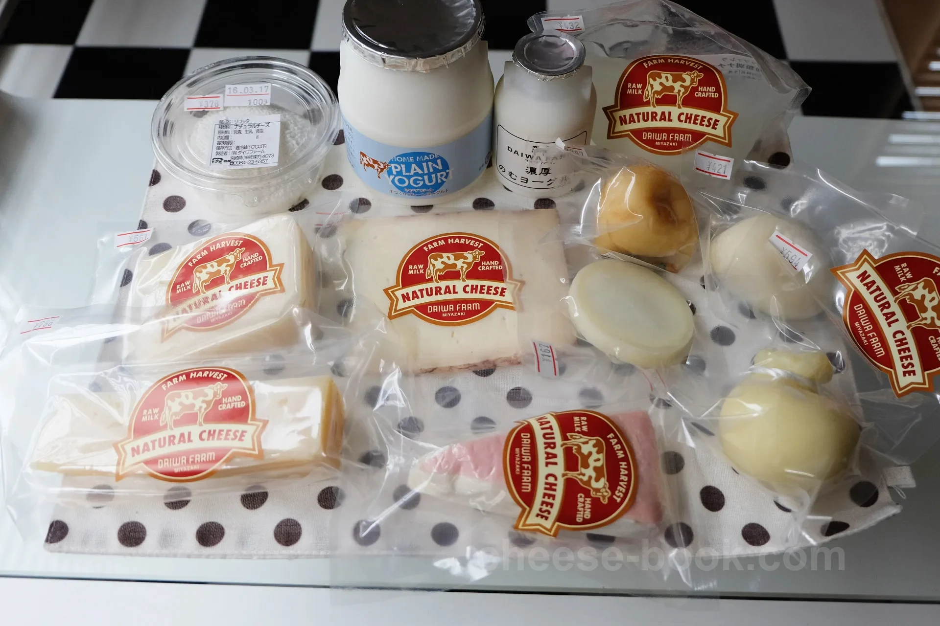この時チーズは「リコッタ」「モッツァレラ」「トーマダイワ」「ジンゼ」「ロビダイワ」「スカモルツァ・アフミカータ」「スカモルツァ」「プロボローネ」「カチョカヴァッロ」を、他にヨーグルトも購入しました。